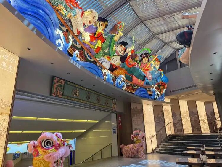 据了解,“城市集市・江南”的设计理念是用当代设计语言重构民俗文化,把潮汕龙舟、陕西包山、八仙人物等传统元素通过现代艺术手法移植到商业综合体中,想要向年轻消费者传递“中国美学不只有古风”的理念,紧跟国潮3.0趋势,成为年轻人拍照打卡的新胜地。