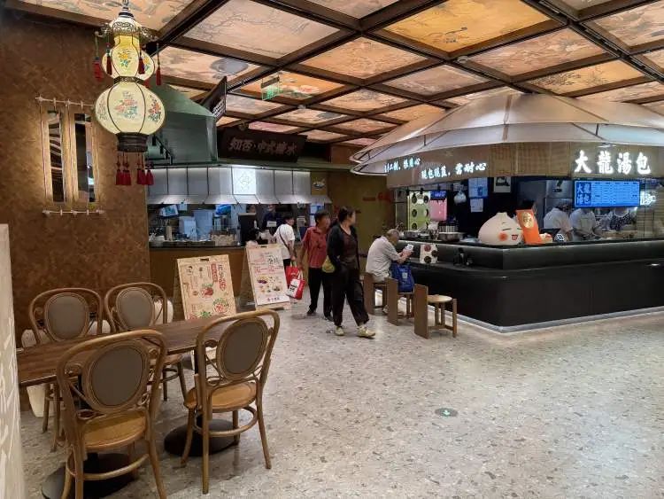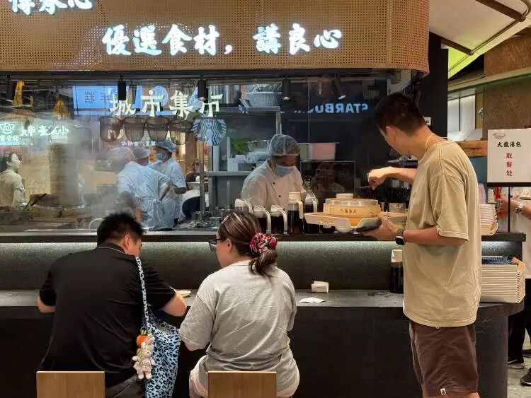 “我是特地来打卡必吃榜上的大龍汤包的,汤包皮薄馅足,汤汁鲜美,确实是蛮好吃的。但是它这个座位是围着这家店的中岛设置了一圈,后面人来人往根本转不开身,吃得有点憋屈。”刚吃完一笼汤包的张先生这样告诉记者。