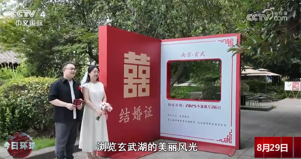 南京市玄武区民政局婚姻登记处马雯称:“我们准备了特色活动,邀请了部分预约的新人早上在玄武门打卡签到,一路行至婚姻登记处,共绘喜扇、制作婚书,还可以免费乘坐游船游览玄武湖的美丽风光。”