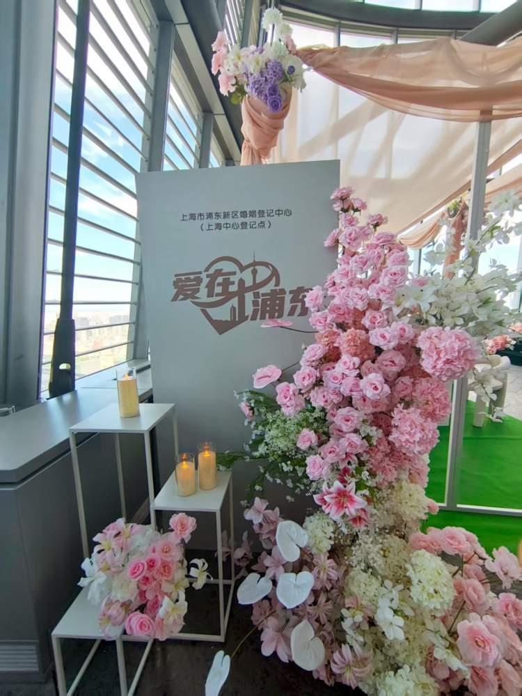“太浪漫了!在这里领证,仿佛整个城市都在为我们的爱情见证。”站在上海中心大厦52层花海的包围中,面朝落地窗外的陆家嘴摩天楼群,新人刘先生和韩女士激动地说。