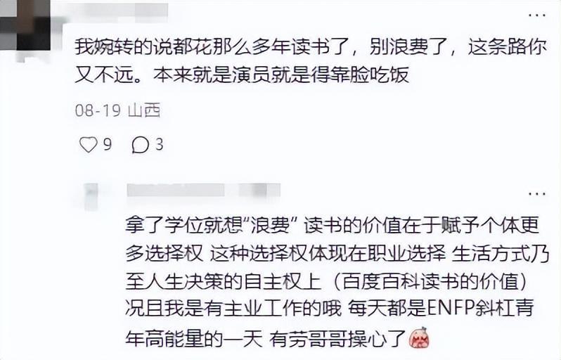 也有人吐槽“浪费学历”,劝她“走智慧线,别混圈”。