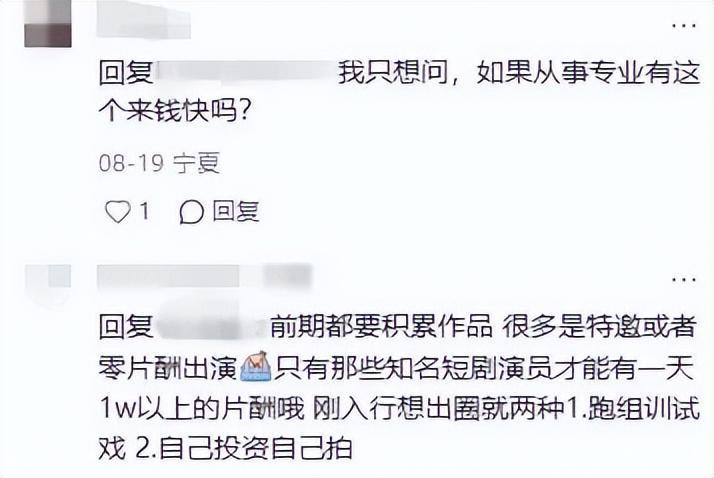 她直接大实话:“前期多数零片酬,要积累作品。”