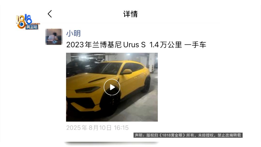 施老板:2023年的兰博基尼的Urus S版本,然后是开了14000到15000公里。记者:报价是多少?施老板:报价是300万。
