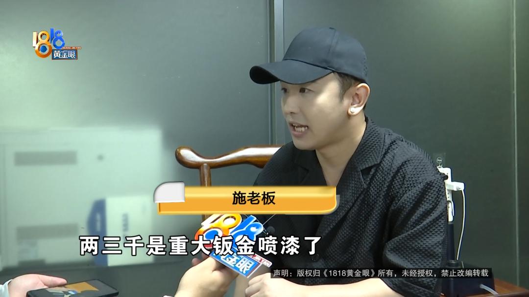 记者:一千多意味着什么?施老板:一千多就属于钣金喷漆了。记者:那如果它这两三千呢?施老板:两三千是重大钣金喷漆了,就是大钣金了,就刮的腻子特别厚。