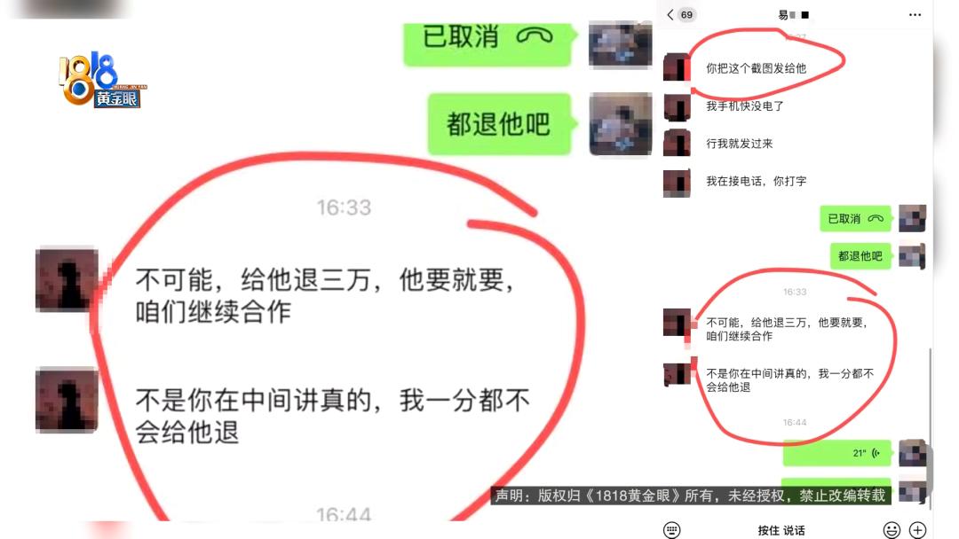 施老板:只愿意退3万,我肯定是不行的。因为你车况没有报准,首先没有报准情况下就有钣金喷漆了,那你必须得先退我。但是他们做事耍无赖,就是不肯退。