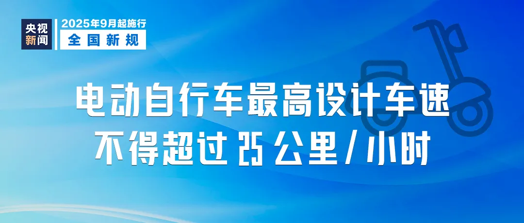 新版强制性国家标准《电动自行车安全技术规范》9月1日起实施。新国标规定,具有电驱动功能的电动自行车最高设计车速不得超过25公里/小时;电动自行车使用的塑料总质量不应超过整车质量的5.5%。