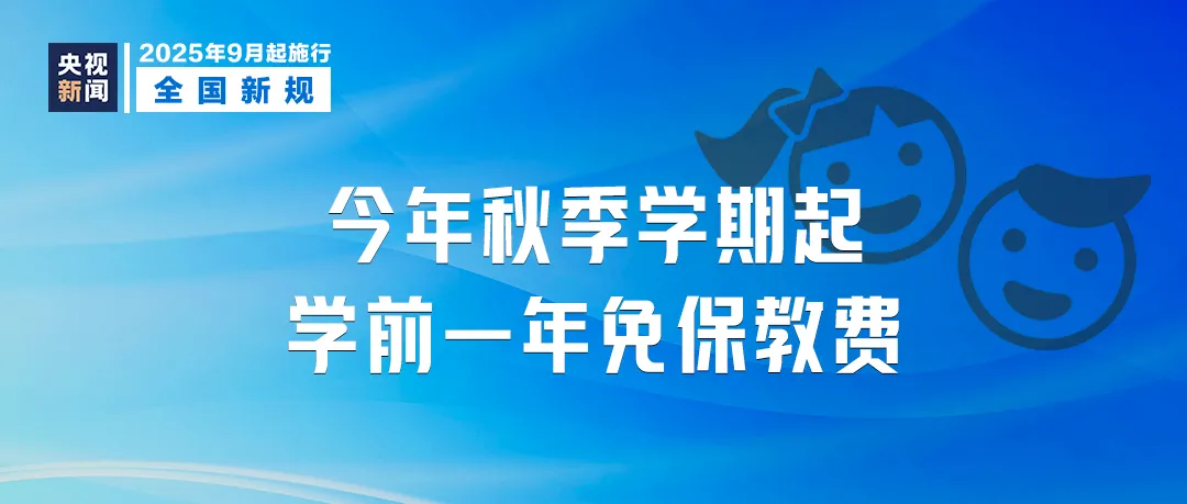 国务院办公厅印发《关于逐步推行免费学前教育的意见》,从2025年秋季学期起,免除公办幼儿园学前一年在园儿童保育教育费。