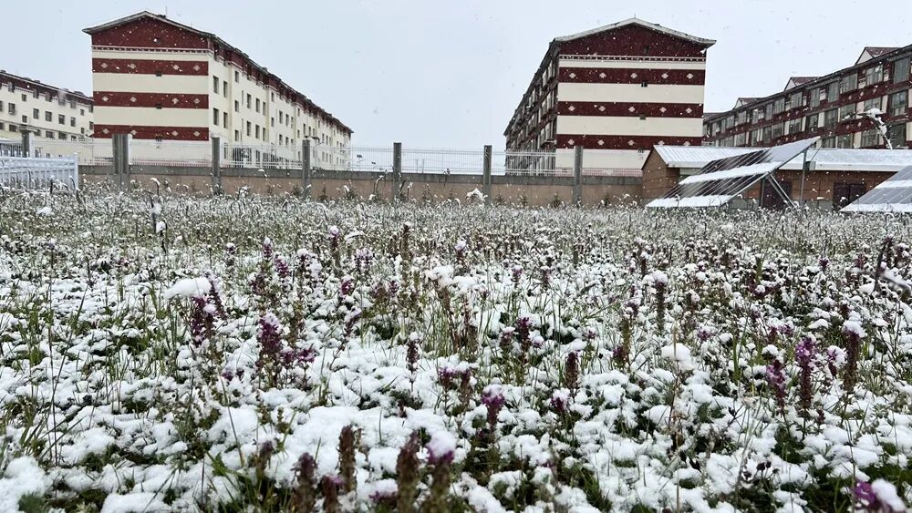 这个时节西北高海拔地区出现降雪并非罕见。图为8月29日,青海果洛州甘德地区出现雨夹雪天气,高海拔地区出现明显积雪,气温持续走低。(图/王晓蓉)