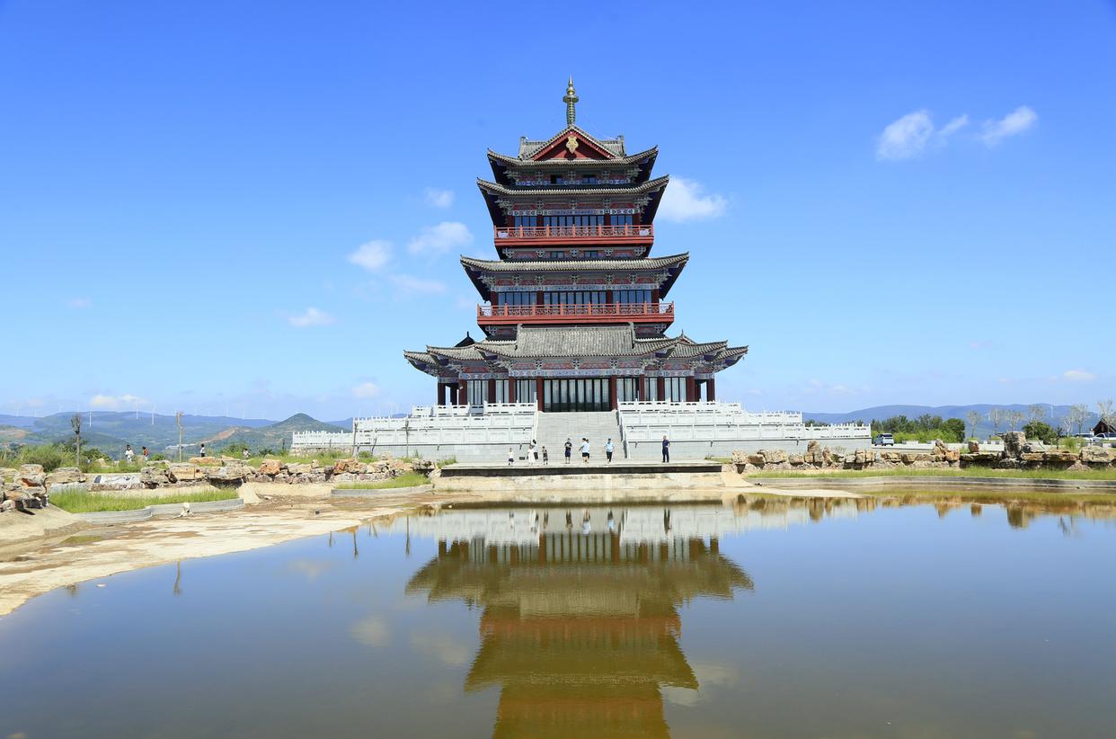 8月31日,游客在河南省洛阳市汝阳县瑞云山森林公园瑞云阁观光。新华社发(康红军 摄)