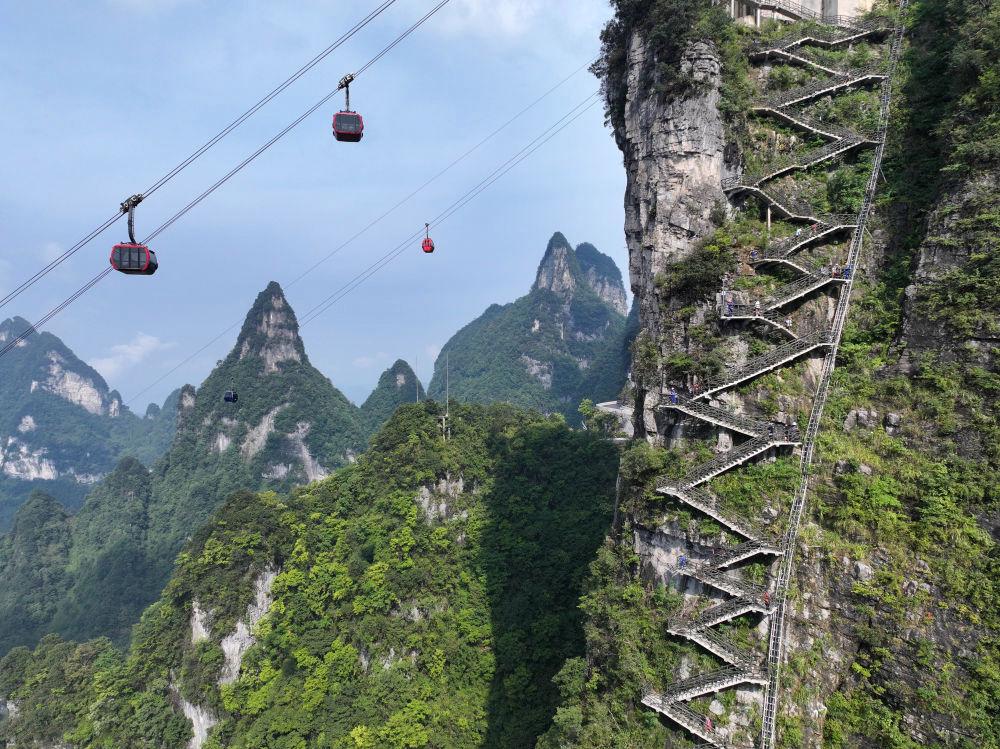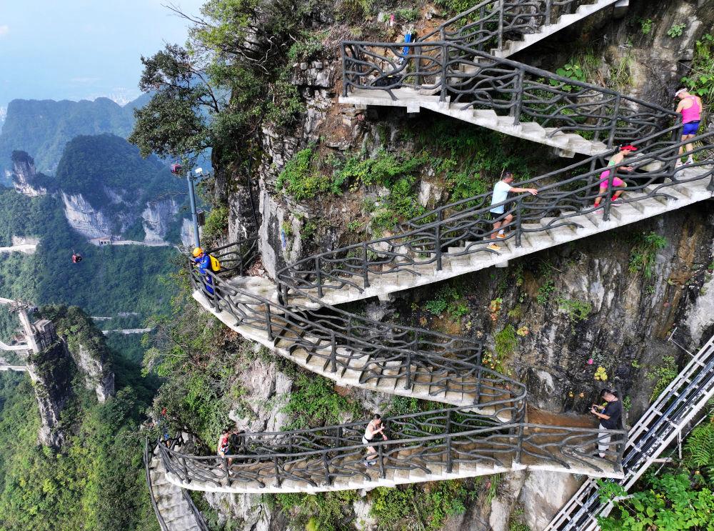 新华社长沙8月31日电(记者 张格)2025“冲顶天门”全国登山挑战赛(张家界天门山站)近日在湖南省张家界市天门山景区举行,80名顶尖专业跑者和约800名大众选手参赛。其间,一条以“Z”字形嵌于海拔千米绝壁间的“岩壁云梯”越野赛道首次亮相。