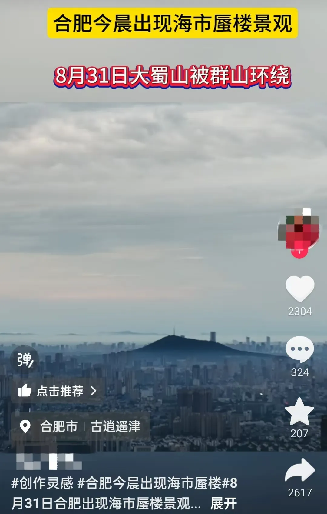 8月31日早晨,有合肥市民在社交媒体发布的一条关于合肥出现“海市蜃楼”的视频引发关注。当天晚间,大皖新闻记者从气象专家获悉,这个可能只是云层偶然堆积形成的景观,不能确定是海市蜃楼。