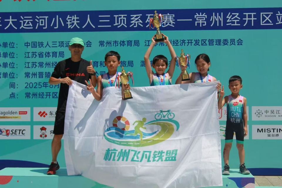 他每周带着孩子们在杭州电竞公园进行训练,暑假里频率增加到了一周三次,他们还拉起了一支自己的队伍——杭州飞凡铁盟,暑假里他带着孩子们参加了第一场小铁人比赛,“我们拿到了一个第四名,两个第六名。”三座金灿灿的大奖杯,不光让孩子们很兴奋,让他也找到了成就感。