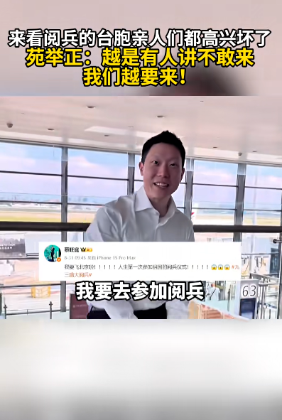 同日,受邀参加九三阅兵的台湾大学哲学系教授苑举正抵达北京,他在机场接受采访时表示:“非常高兴有这个机会,这是我的认同,越是有人讲不敢来,我们越要来!”