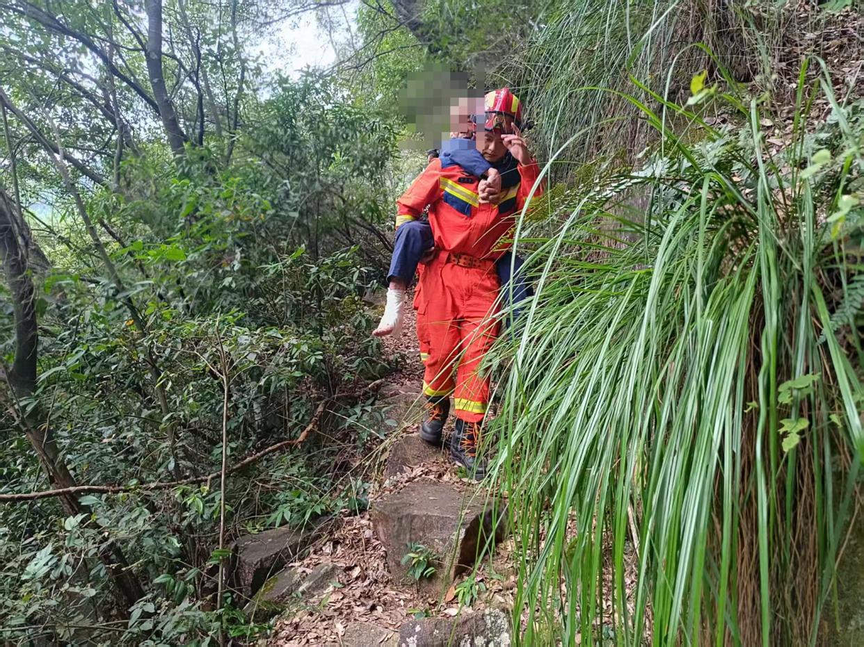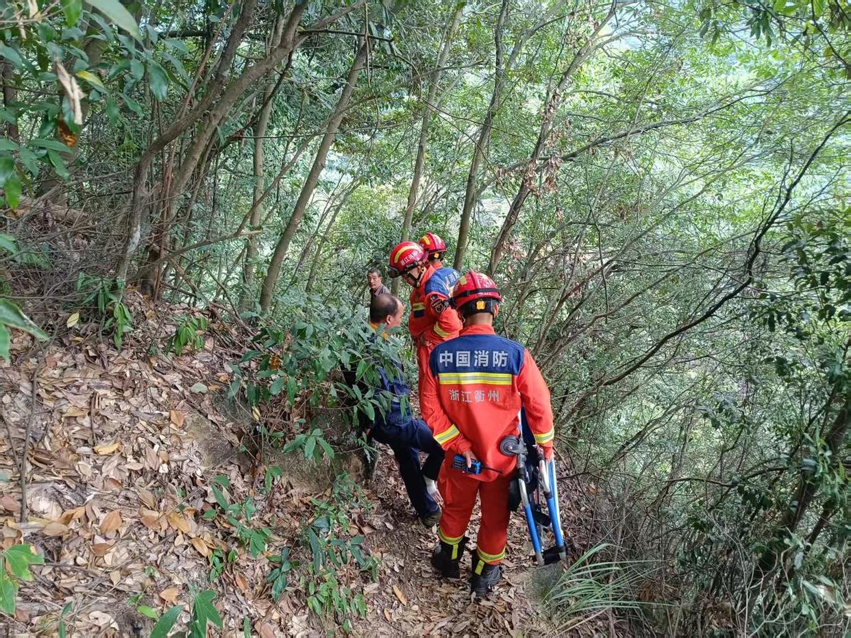 接到报警后,衢州消防、公安、医护等救援力量火速集结。然而,救援难度远超预期。经与村干部核实,受伤村民位于山的另一侧,救援人员必须携带沉重的装备,在当地向导的带领下,徒步翻越一座山头。