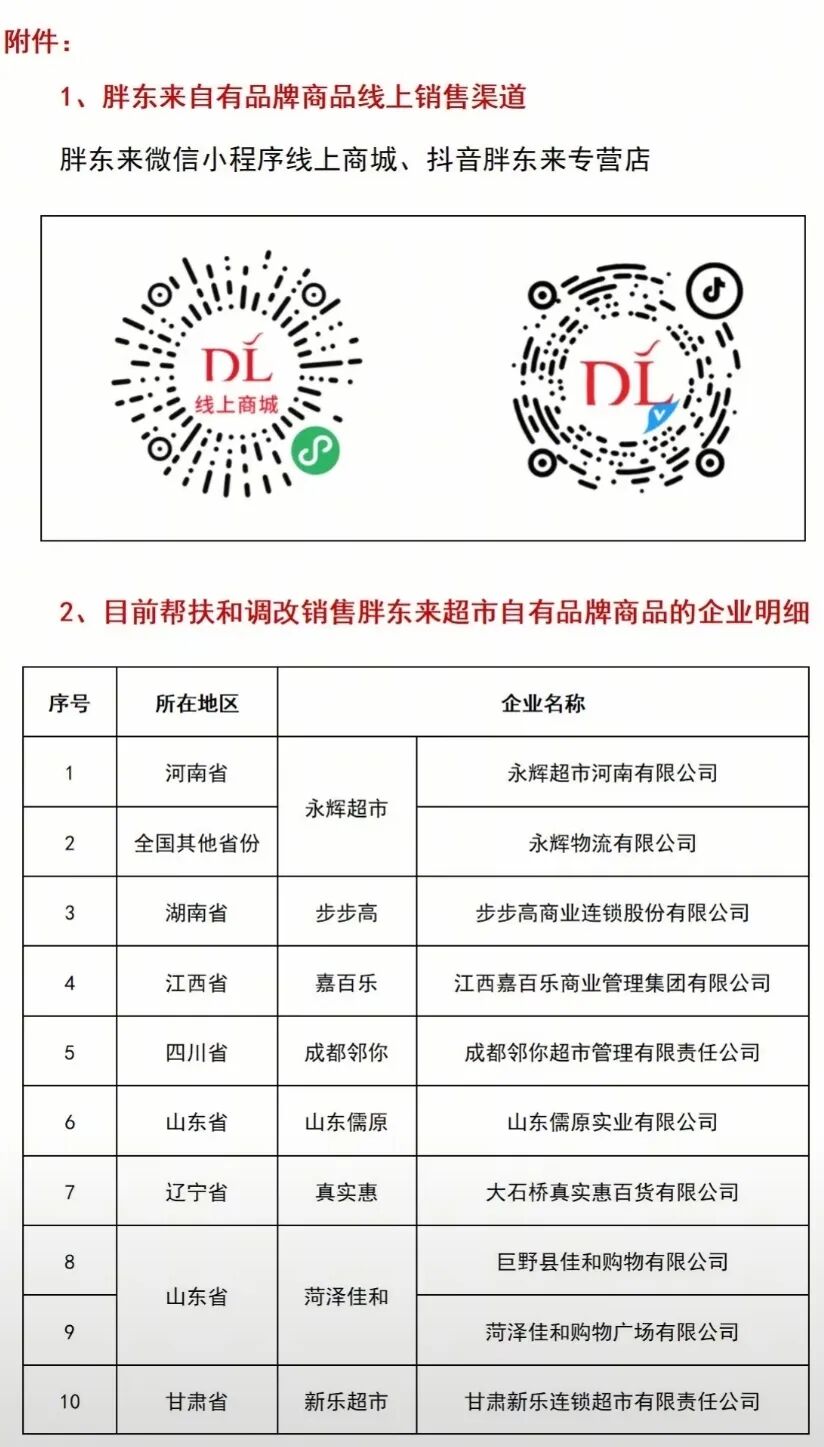 为帮助消费者有效甄别,胖东来也明确了其自有品牌的范围及官方销售渠道。其自有品牌包括“DL”、“DL胖东来”、“东来品质”、“自由·爱”等多个系列。