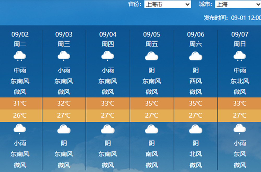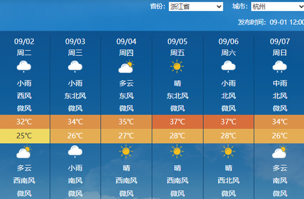 9月2日至7日上海、杭州高温天气短暂中断后再度发展。来源:中央气象台