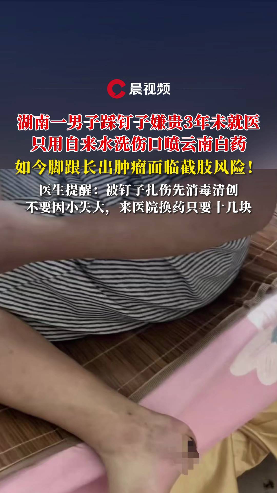 今年6月份,博主曾发布视频,男子踩了钉子一年多不处理,平时还要出门干体力活。出门前,男子用喷头冲伤口,喷上云南白药,用白纸盖住伤口缠上绷带,套上袜子就出门。男子还自称为了穿鞋子,用剪刀剪掉了伤口里长出来的“烂肉”,他也被网友叫作“钉子哥”。视频中,博主劝其去医院,“钉子哥”却不当回事。