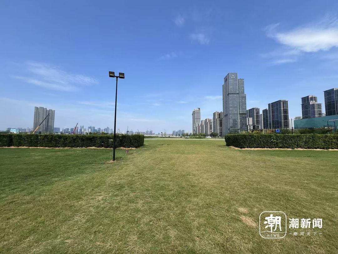 这块大草地位于日耀之城小区西侧,紧挨着先锋河,占地面积不小,上面还种了许多绿植。不过,眼下舞台已经被拆除了,大草地回归了原本的模样。