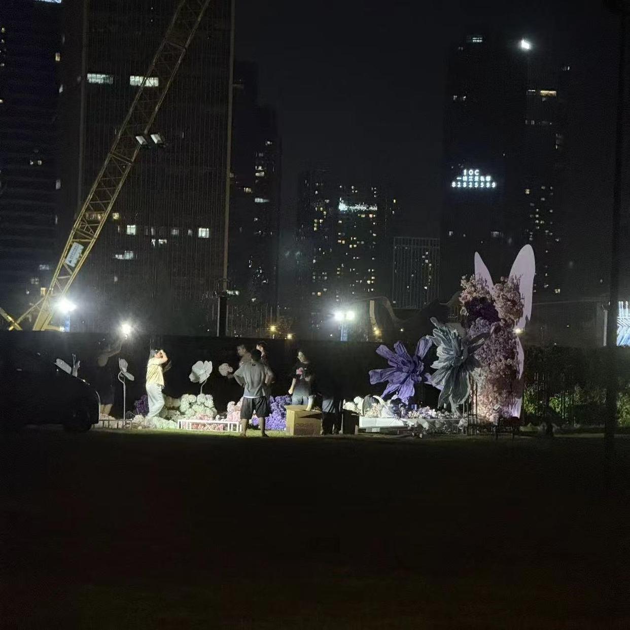 记者联系上了该网红工作室的相关负责人,对方表示他们此前确实在这块草地上搭建了求婚舞台,“因为这里平常也有很多人在露营、烧烤,属于公共区域,所以就临时借用一下。”