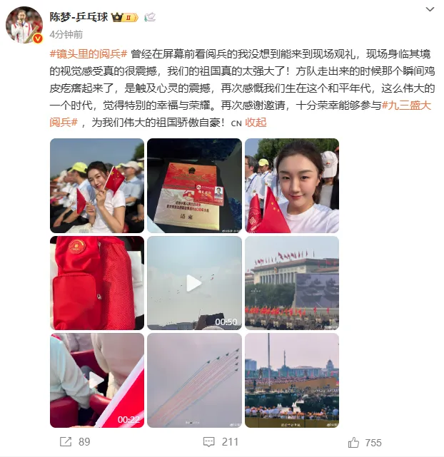 曾经在屏幕前看阅兵的我没想到能来到现场观礼,现场身临其境的视觉感受真的很震撼,我们的祖国真的太强大了!方队走出来的时候那个瞬间鸡皮疙瘩起来了,是触及心灵的震撼,再次感慨我们生在这个和平年代,这么伟大的一个时代,觉得特别的幸福与荣耀。再次感谢邀请,十分荣幸能够参与九三盛大阅兵,为我们伟大的祖国骄傲自豪!