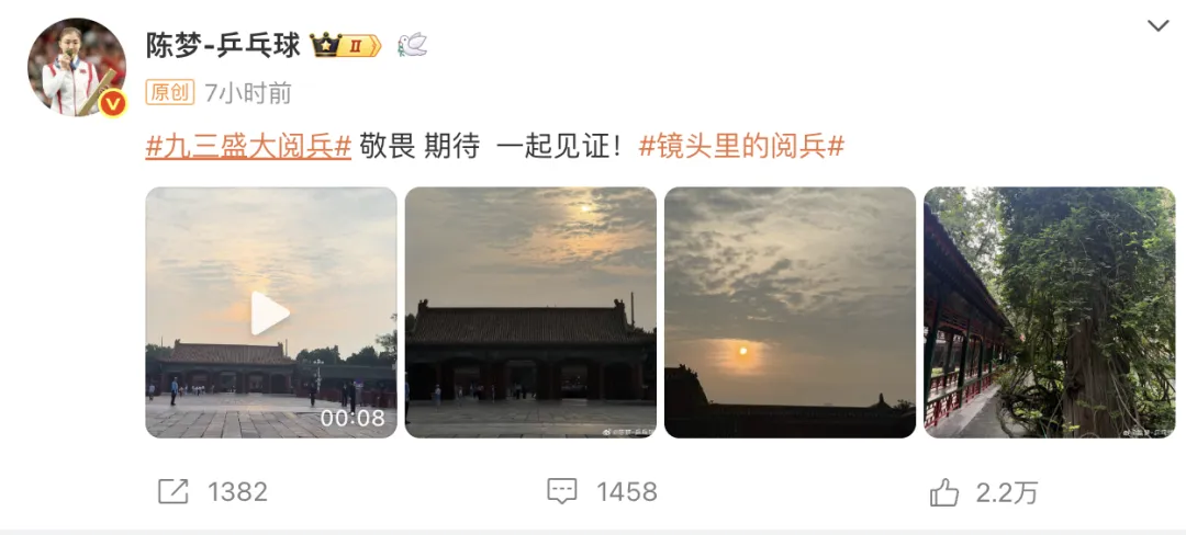 陈梦在微博发文记录观礼。