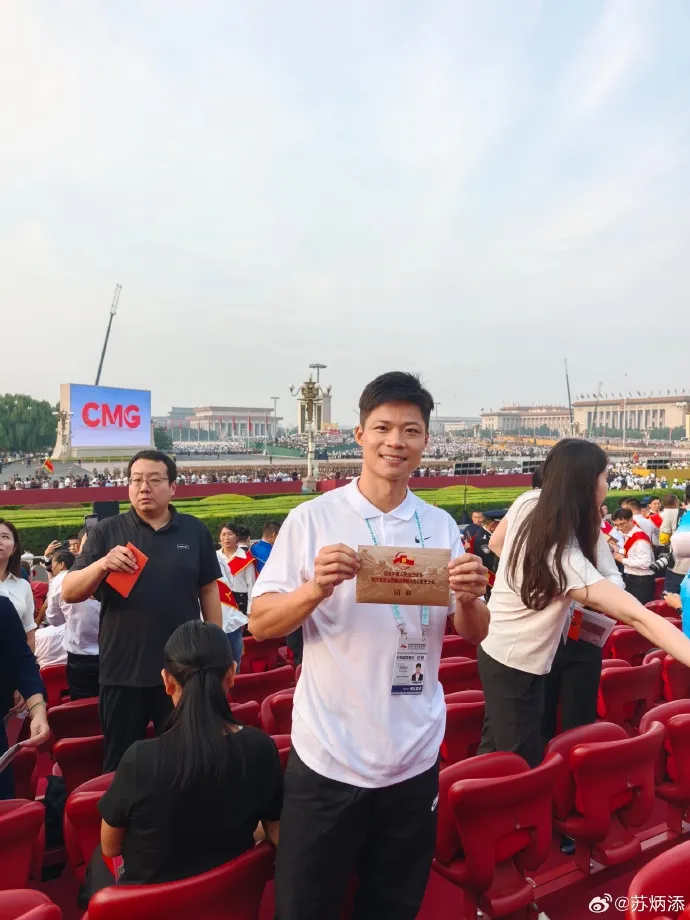 男子短跑运动员苏炳添在观礼现场。