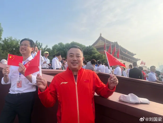 刘国梁在观礼现场。