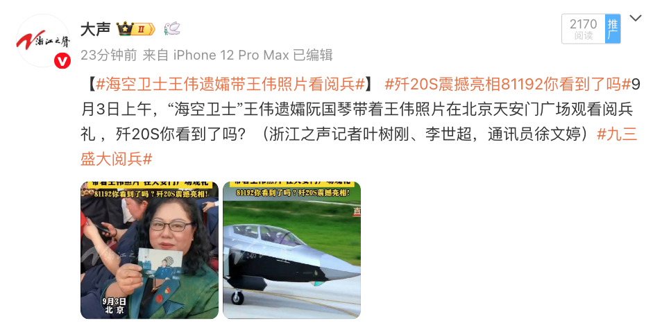 “海空卫士”王伟遗孀阮国琴带着王伟照片