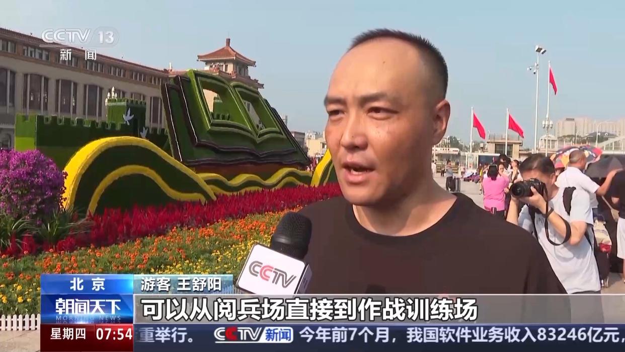 游客 王舒阳:我是在2015年作为坦克方队的成员,在天安门接受了习主席的检阅。如今,我看装备方队已经变成了模块化的作战编组,可以从阅兵场直接到作战训练场,所以说这一点是非常大的一种进步,作为一个中国人我感到无比的骄傲和自豪。