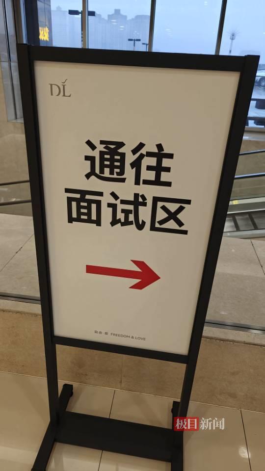 4日一大早,极目新闻记者来到面试现场,就看到面试者们正在签到,并根据顺序单独进入会议室,每人面试时间大约10分钟,有两位部门主管和HR在场提问。面试结束后,每人手拿一份礼物离开。大雨滂沱,工作人员还主动为面试者们打伞护送离开。