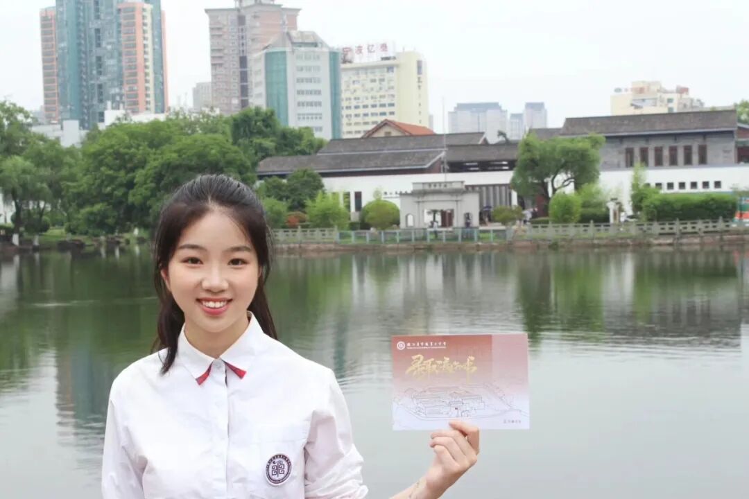唐以萱拿着宁波二中的录取通知书 受访者供图