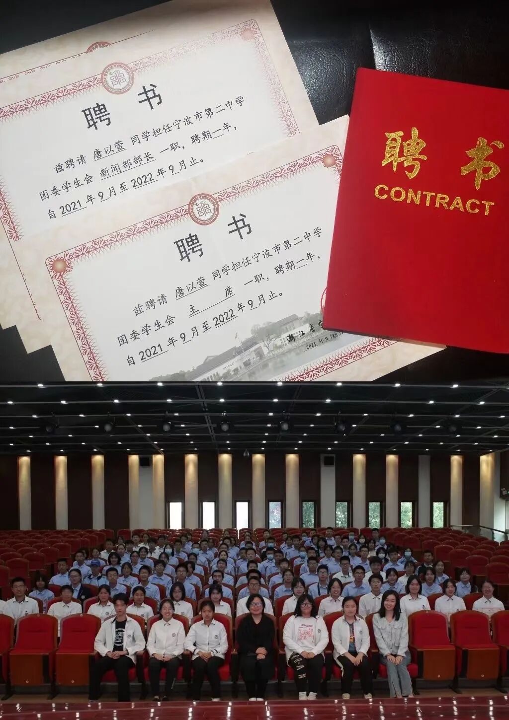 高中,唐以萱考入宁波市第二中学。在二中,她不仅担任校学生会主席,还是阿卡贝拉合唱团团长。