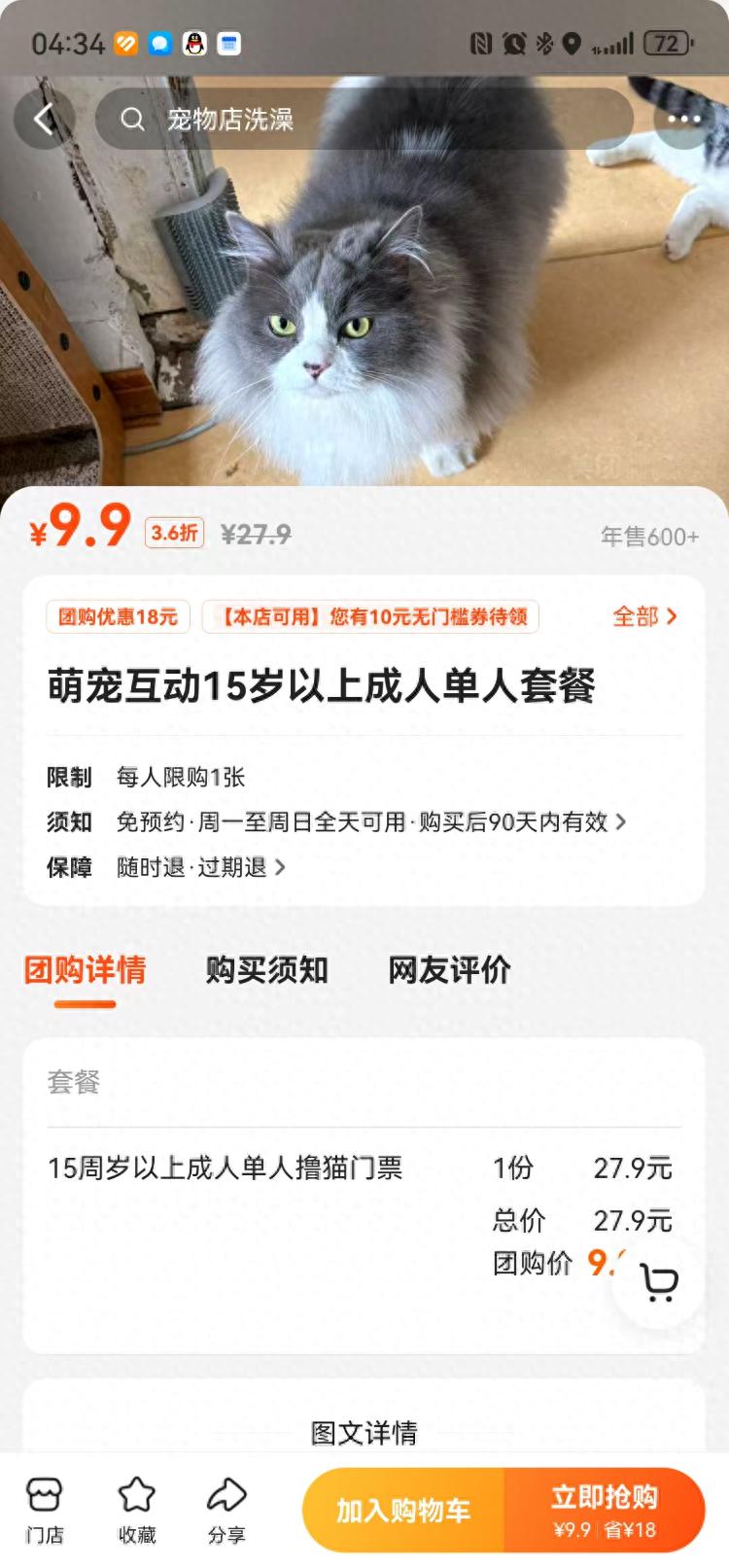 吴先生的撸猫馆9.9元就可以撸猫。