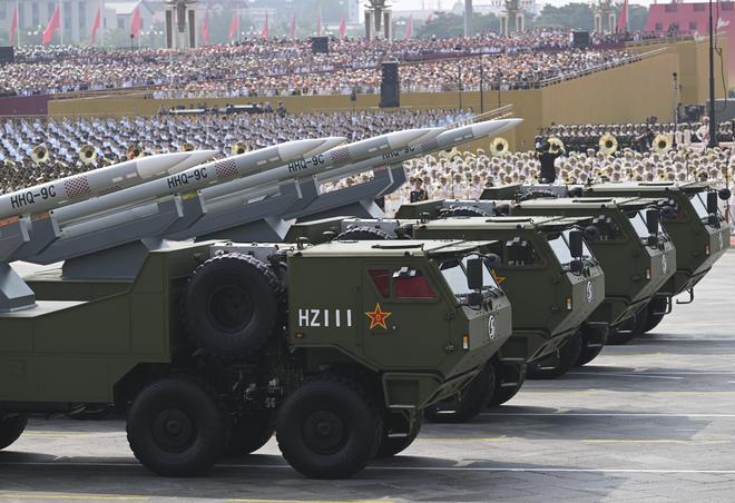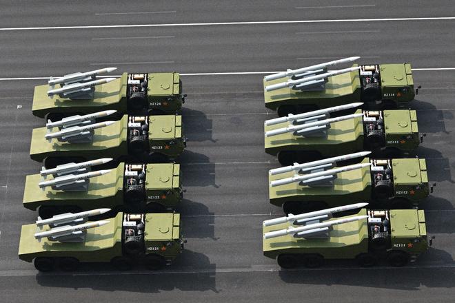 9月3日,纪念中国人民抗日战争暨世界反法西斯战争胜利80周年大会在北京隆重举行。这是舰载防空武器方队接受检阅。新华社记者 胡虎虎 摄