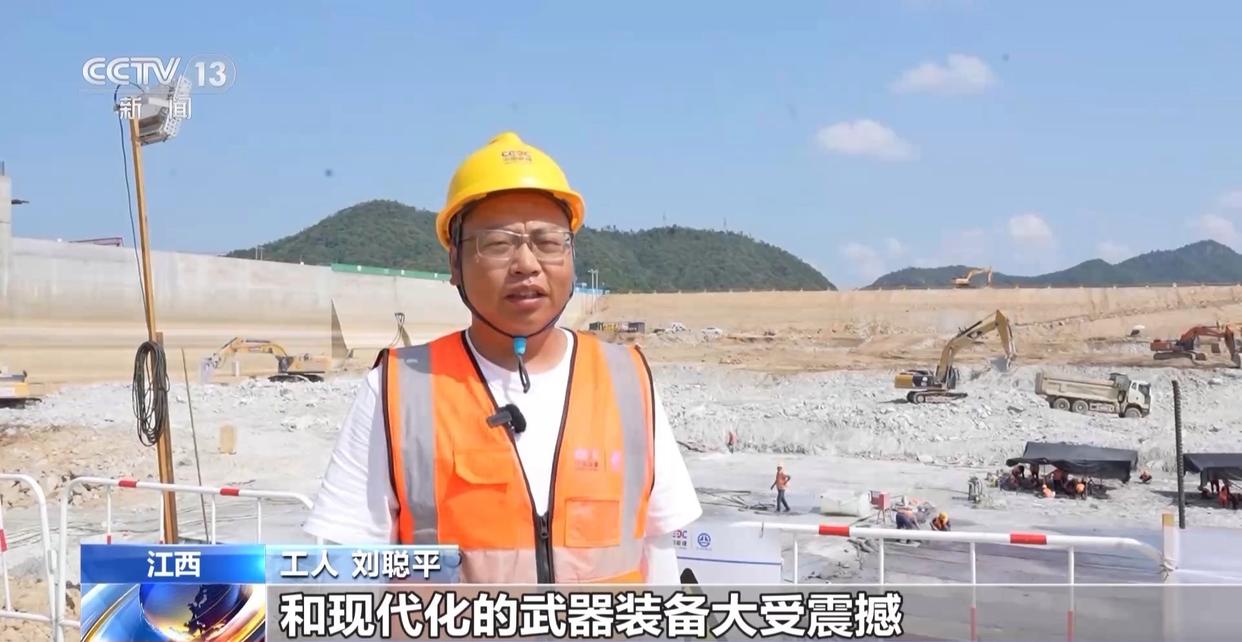 在江西乐平水利枢纽的主坝建设现场,喧嚣的施工机械声暂时停歇,一座简朴的工棚内早早挤满了人,大家共同守候纪念中国人民抗日战争暨世界反法西斯战争胜利80周年大阅兵的庄严直播。