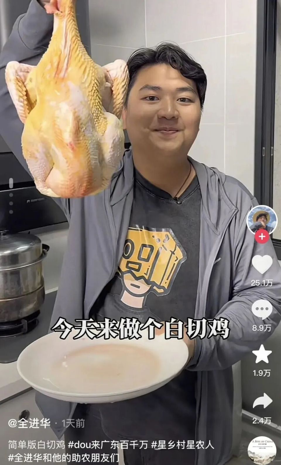 9月2日晚,全进华还在个人社交平台发布视频,手把手教学复刻了湛江白切鸡进行回应,引起广泛关注。