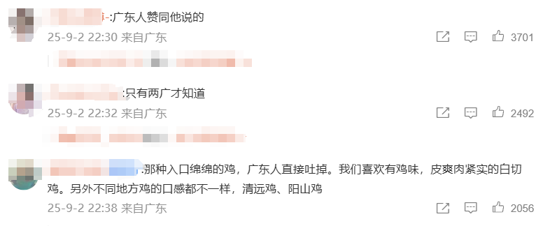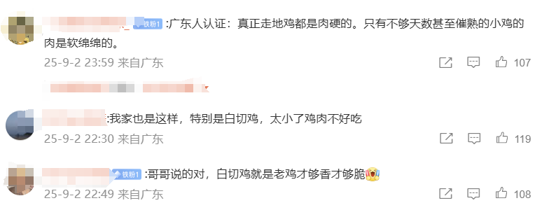 有人直言:“广东走地鸡就是要养到180天够老才好吃,有鸡味。”不少人将争议指向评委的评判标准,质疑 “评委没吃过正宗广东白切鸡,不懂真味”,并强调, “那样的老鸡吃起来才有嚼头,越嚼越香。”