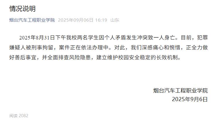 9月6日,烟台汽车工程职业学院发布情况说明。