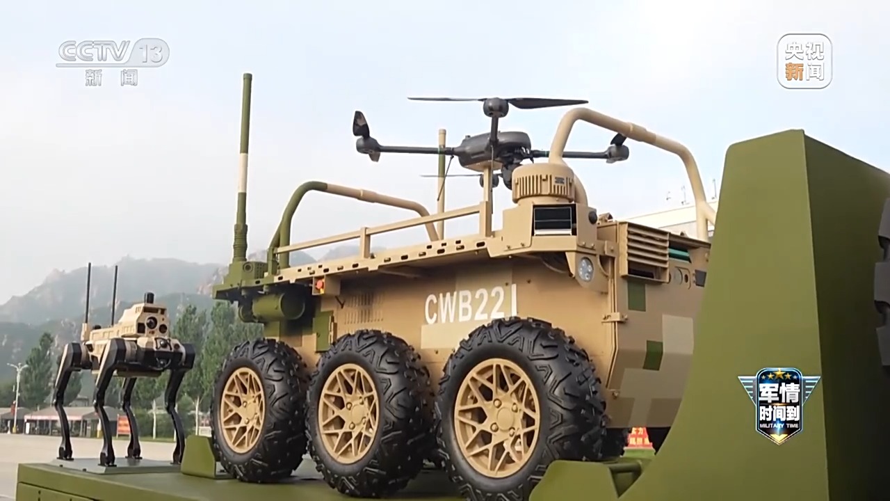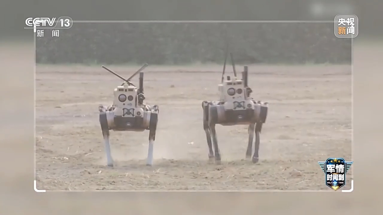 陆上无人作战方队 杜剑:这款无人机具备对任务区域长时持续侦察监视能力,主要用于巡逻侦察、对可疑人员的定位以及喊话,很大程度上丰富了巡逻执勤部队的执勤手段。这两匹机械狼可以适应多种作战环境,可以在侦察、打击、保障等各个方面为我们军事行动提供助力,同时它可以灵活切换疾跑、静卧等多种模式以适应不同作战需求。