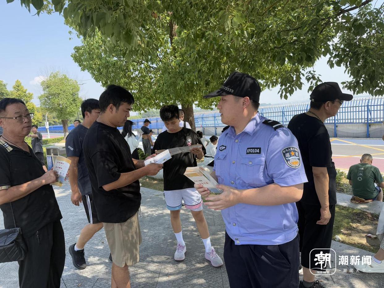 巡防队员分发观潮安全手册。记者 戴佳轶 摄