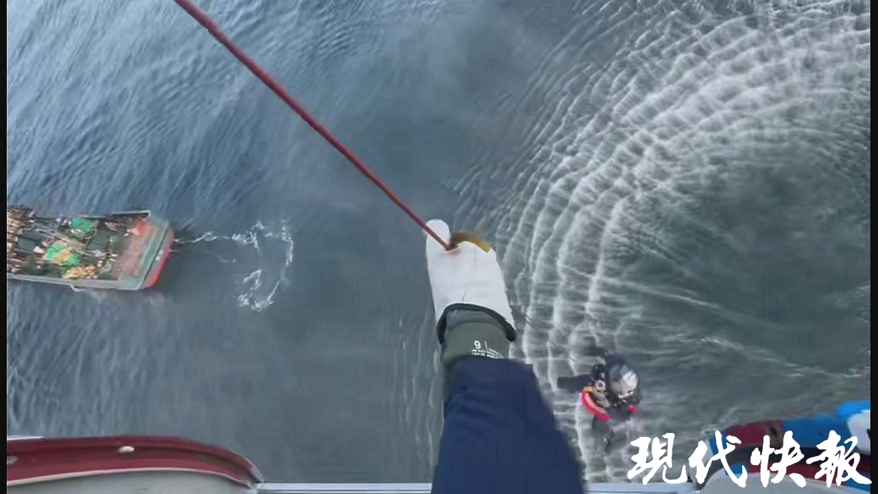 4点40分左右,救助直升机从射阳通用机场起飞,快速朝渔船所在区域飞去。到达渔船上空后,直升机救生员携带担架采用索降的方式,下降到渔船的甲板,将晕倒渔民固定在担架上,随即吊运进直升机机舱。