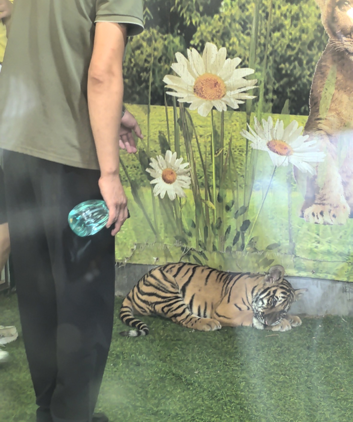 9月8日,有网友发帖称在山东潍坊诸城市的诸城市动物园,发生了工作人员打小老虎头、朝小老虎呲水的情况。网友在帖子中表示,“诸城动物园小老虎合影,估计是累了,想躺下,工作人员一个耳光打在老虎头上,小老虎呲牙低吼表示不满,工作人员为了让它快起来,拿喷水壶开始呲。”根据帖子中的图片,一只小老虎趴在地上,一工作人员手指小老虎,右手拿着喷水壶。