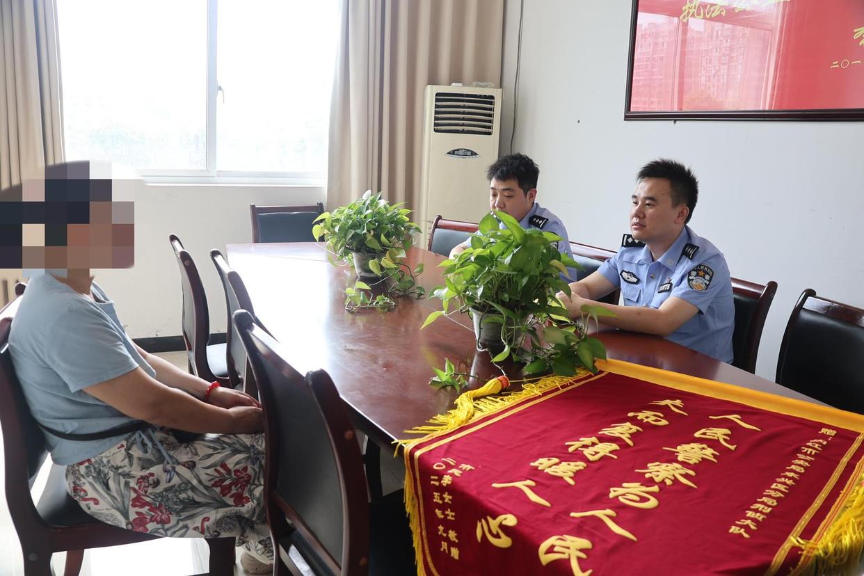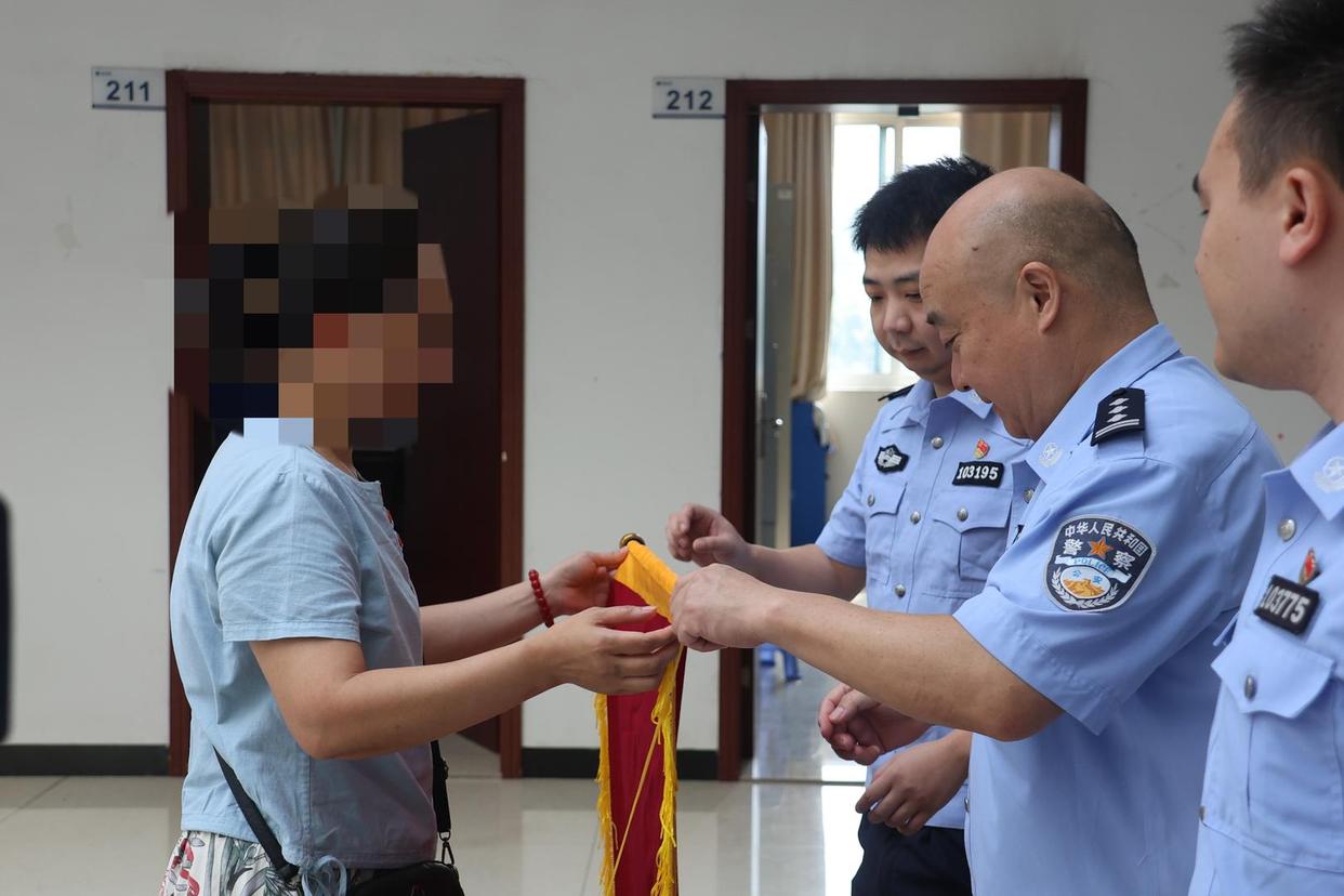 ▲李女士赠送锦旗感谢民警