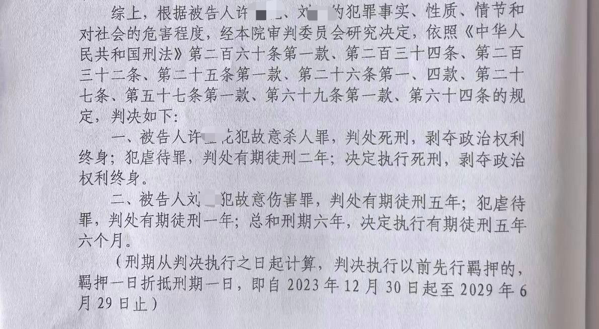 今年4月一审时,法院已判决继母许某花死刑,生父刘某有期徒刑五年六个月。白女士称,一审宣判后,刘某表示要上诉,而她认为对刘某的判罚太轻,也提出上诉。本次二审开庭,她的诉求是判处刘某死刑或无期徒刑。