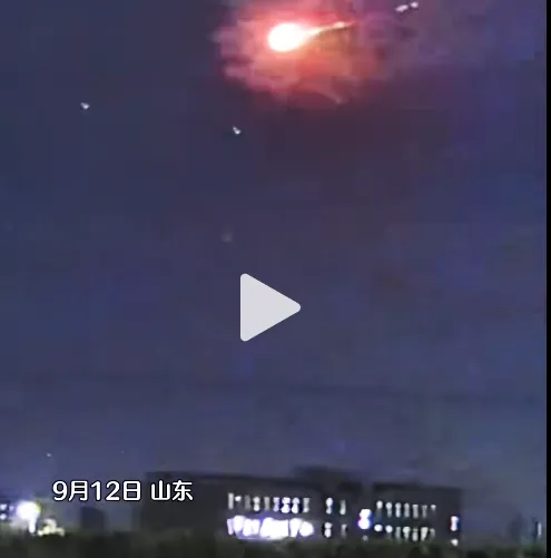 9月12日,山东潍坊,多名网友发布视频表示: 夜晚看到“不明飞行物被击落”。有目击者称听到两声巨响,正在下雨以为打雷。