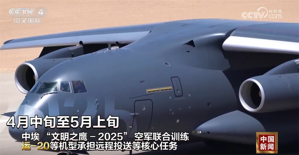 4月中旬至5月上旬,中埃“文明之鹰- 2025”空军联合训练在埃及举行,运-20等机型承担远程投送等核心任务,不仅助力中方快速部署,还参与联合训练,充分展现中国空军战略投送与协同作战能力。