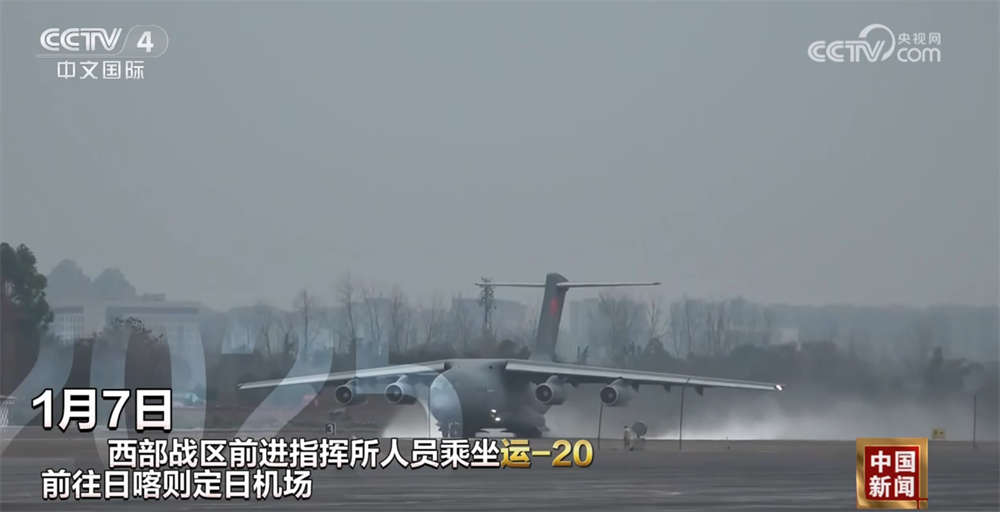 1月7日,西藏日喀则市定日县发生6.8级地震。当天下午,西部战区前进指挥所人员乘坐运-20到达日喀则定日机场,凸显其强大的高原适应与应急投送能力。