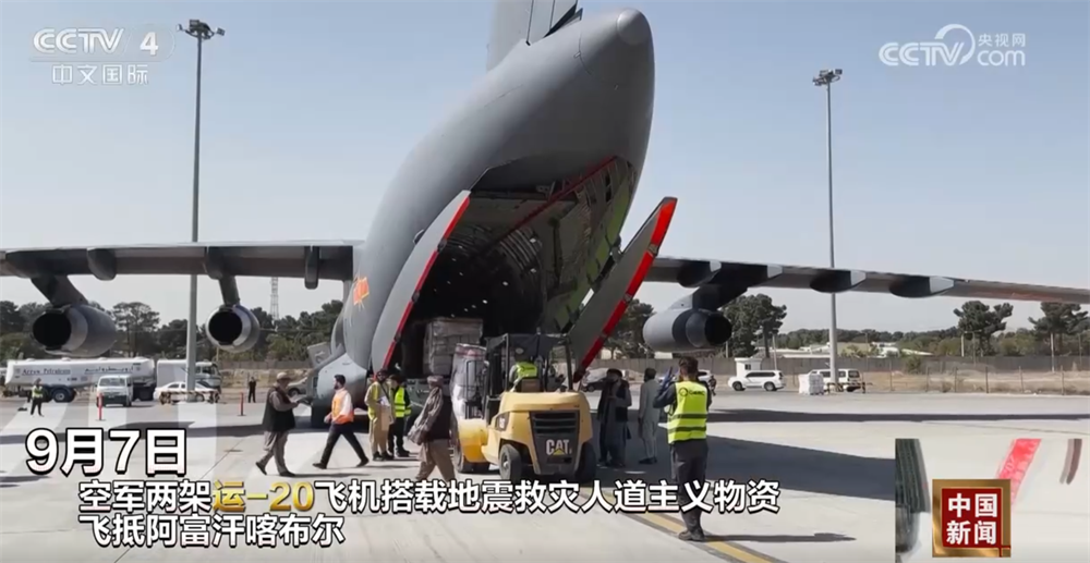 9月7日,中国政府向阿富汗提供的首批地震救灾紧急人道主义物资抵达喀布尔,执行这次任务的依然是中国空军的运-20飞机。