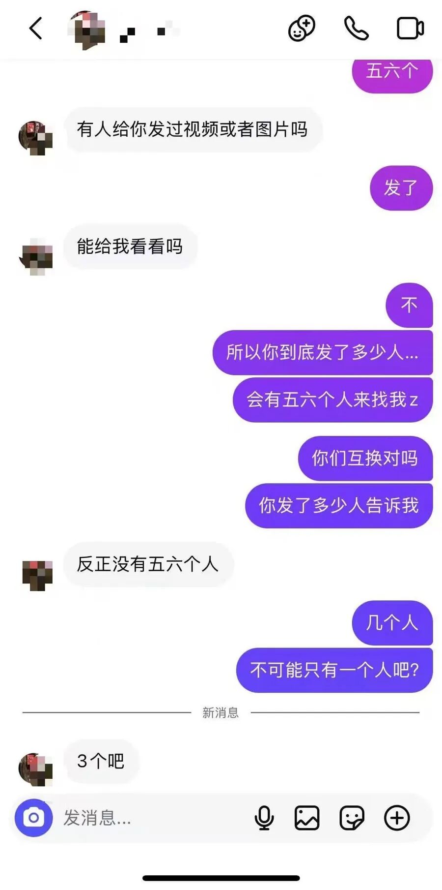很快,同学们好像通过不同渠道知道了这件事。有朋友特意来跟小童聊天,婉转关心她的状态。但也有人从抖音互关列表里找到小童的好友,将照片逐个发给她们,并威胁小童:“我就留着你这个视频,我也不删,不时分享给别人,揭穿你的真面目。”对方还辱骂小童“淫荡”。