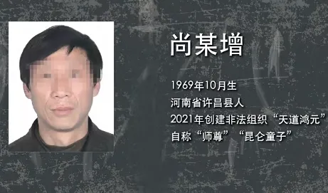 据“中国反邪教”微信公众号报道,2025年初,河南公安机关侦破“天道鸿元”案件。头目尚某增2021年建立具有会道门特征的非法组织“天道鸿元”,自称“昆仑童子”,散播“三期末劫”末世论谣言,称只有跟他修行才能“消灾免难”“祛病赶鬼”,对成员进行精神控制。现已查明尚某增奸淫妇女10人,敛财超500万元。